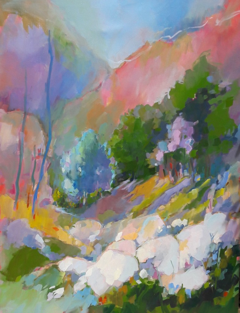 Peintre à Faycelles, elle a découvert avec l’acrylique la spontanéité du geste. Elle a une façon de peintre très personnelle, de penser ,voir ,ressentir, d’interpréter la nature