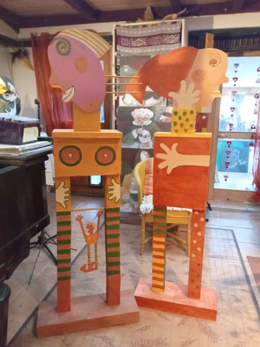 Artiste musicienne professionnelle , elle sculpte ses personnages-totem avec humour tendresse et couleurs .Elle a la sensation que la peinture, la photo et la sculpture ne sont que des moyens différents pour exprimer les même émotions.