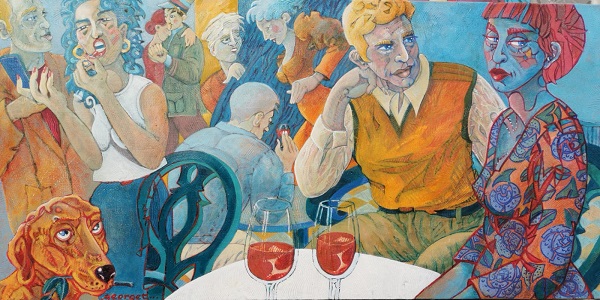 Claudine Georget peint des scènes de bistrot et autres personnages de fête.